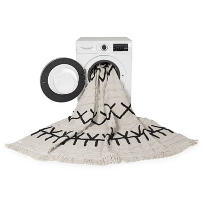 Halınızın ilk günkü görüntüsünü korumak için bazı önerilerimiz var. Halınızı 30 derecede düşük devirde çamaşır makinesinde yıkayabilirsiniz. Yıkama işlemi sonrasında düşük devirde kurutma makinesinde kurutma işlemi yapabilirsiniz ya da halıyı açarak doğal yollarla kurutmaya bırakabilirsiniz. Ancak direk güneş altında bırakılmamalıdır. Nem, renk akmasına sebep olabileceği için halınızı asla nemli şekilde makine içerisinde bırakmayınız. Yıkama esnasında ağartıcı, çamaşır suyu katkılı deterjan kullanmaktan sakınınız. Pamuklu yüzeyi dışarda tutarak makineye yerleştirmek yıkama sırasında dökülen pamukların suyla atılmasını sağlayacaktır. Makinenizin halı yıkamak için yeterli yer kapasitesi olduğundan emin olunuz.